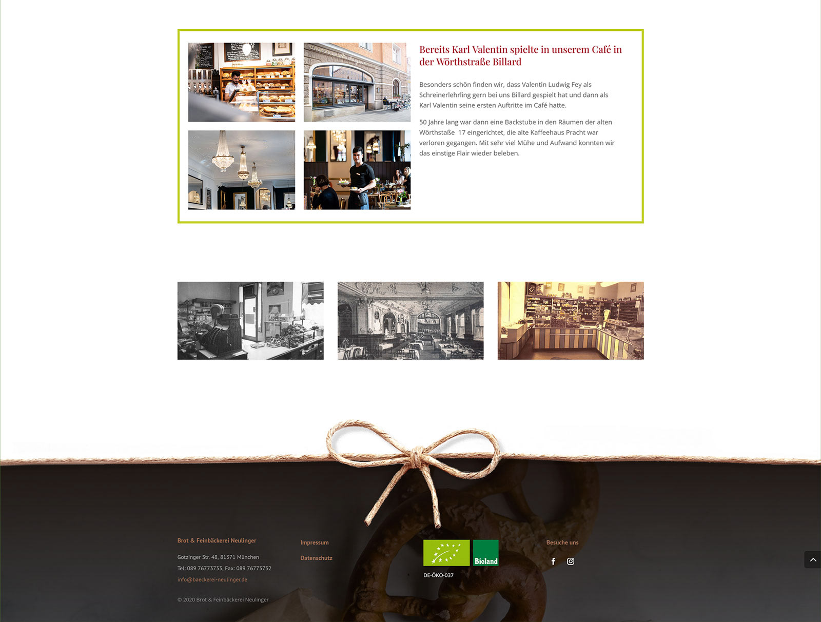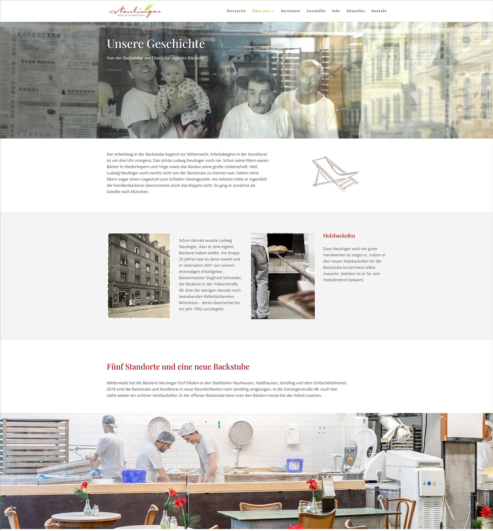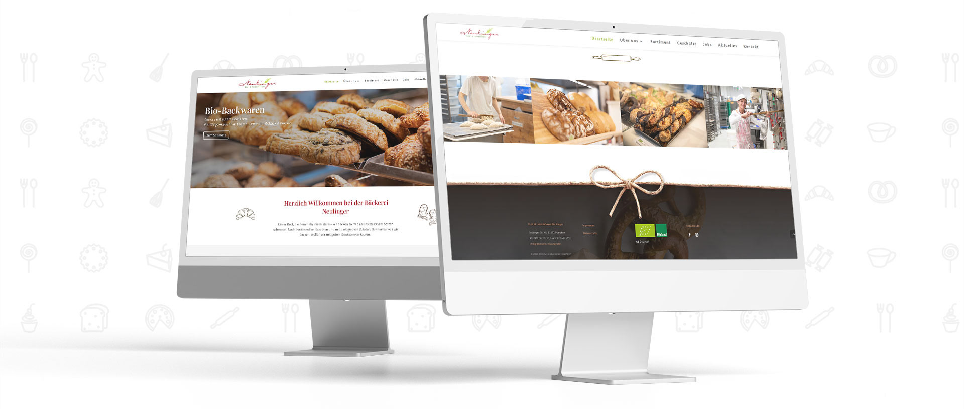 Brot- und Feinbäckerei Neulinger: Website-Entwicklung und Illustrationen für die Münchner Kultbäckerei, die ihre Bäckerware mit traditionellen Rezepten und biologischen Zutaten zubereitet.