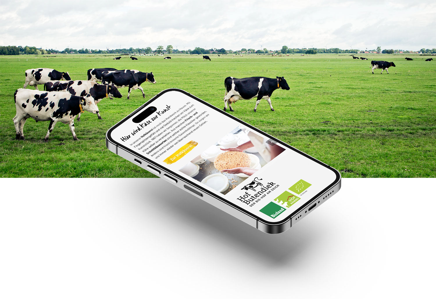 Website Entwicklung für den Familienbetrieb Hof Butendiek. Hier entstehen Frisch- und Schnittkäsesorten, die landesweit vor allem in Biomärkten vertrieben werden.